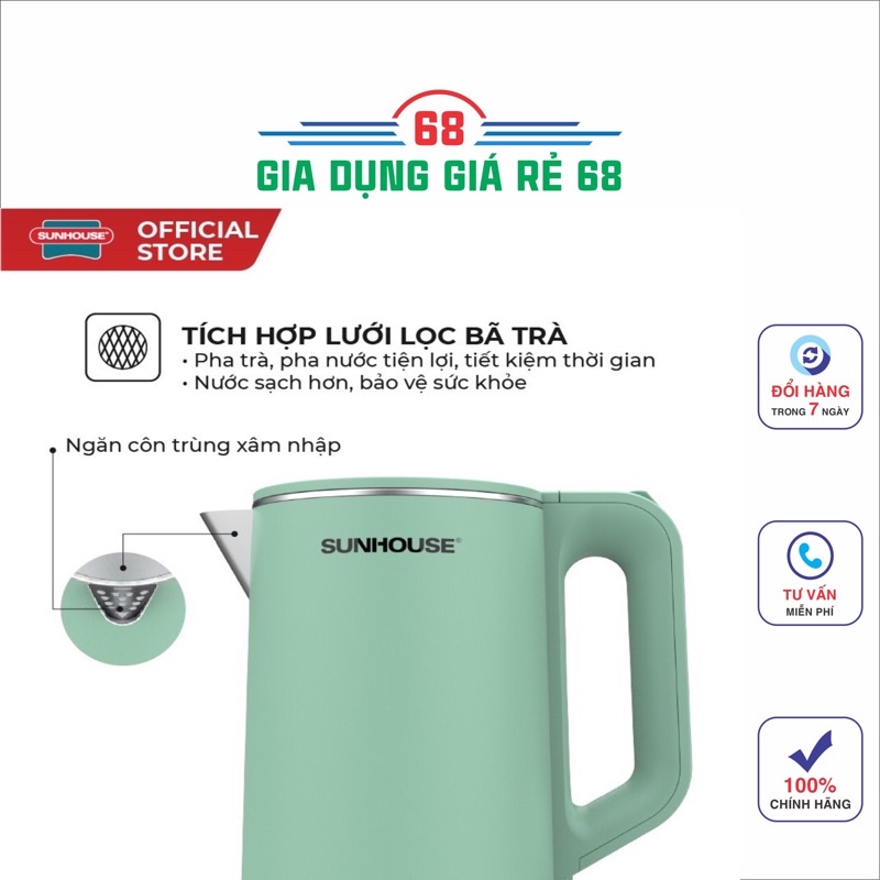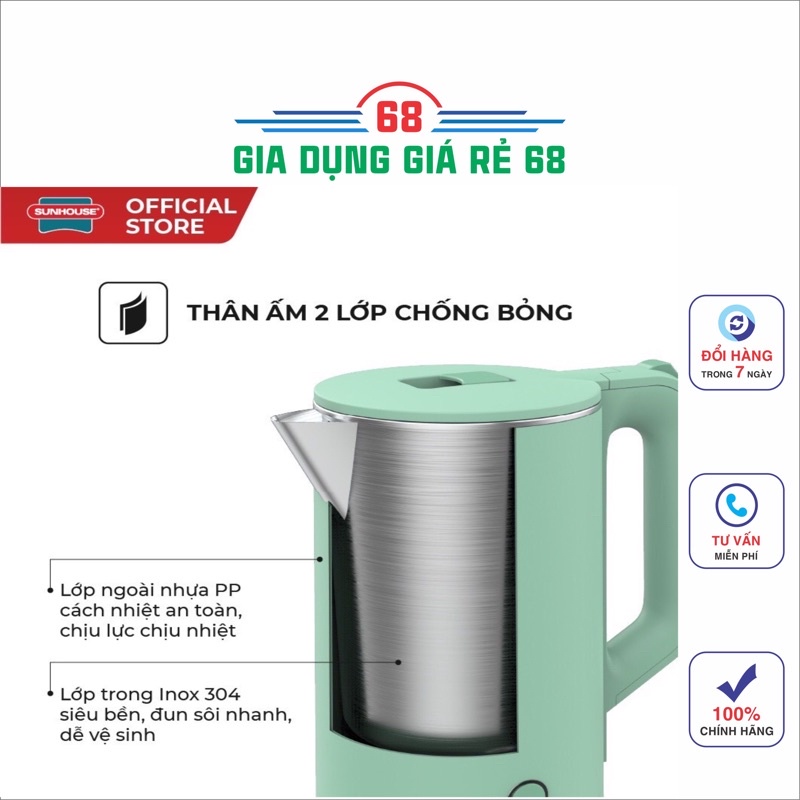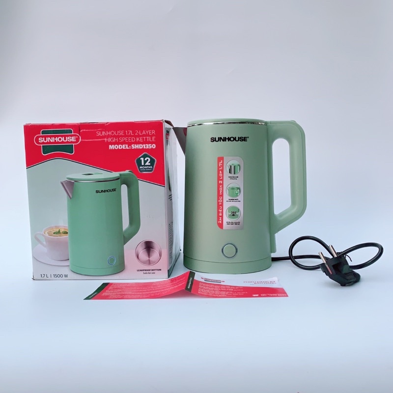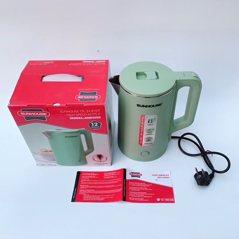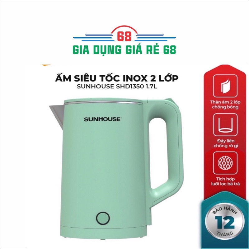Thiết Bị Điện Gia Dụng > Đồ gia dụng nhà bếp > Ấm đun siêu tốc || Ấm siêu tốc inox 2 lớp 1.7L SUNHOUSE SHD1350Còn hàng