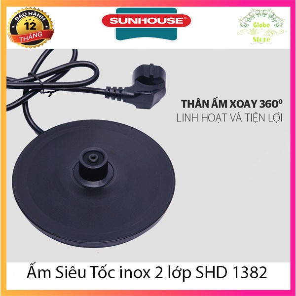 Ấm Siêu Tốc Inox 2 Lớp Cách Nhiệt Sunhouse SHD 1382