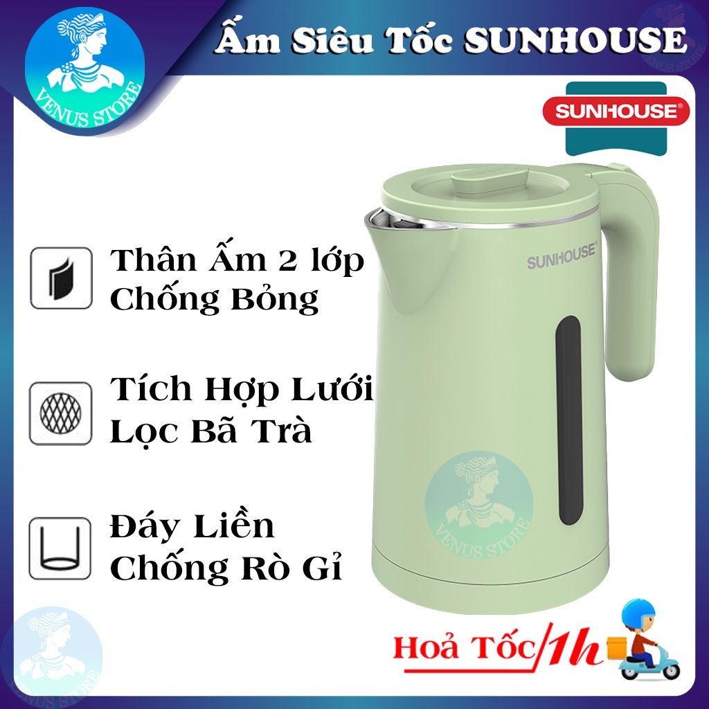 Thiết Bị Điện Gia Dụng > Đồ gia dụng nhà bếp > Ấm đun siêu tốc || Ấm Siêu Tốc INOX 2 Lớp Cao Cấp 1.8L SUNHOUSE SHD1353- Ấm Đun Nước Sêu Tốc INOX SUNHOUSE SHD1351Còn hàng