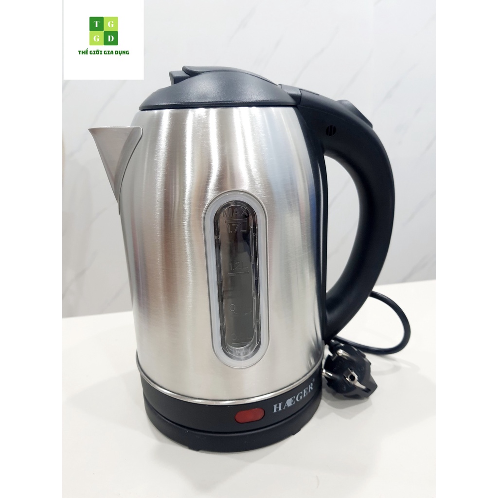 Thông tin sản phẩm Ấm siêu tốc Haeger 1.7L- Dung tích: Bình đun siêu tốc Haeger có dung tích 1.7L , Cân nặng Ấm đun siêu tốc : 825g