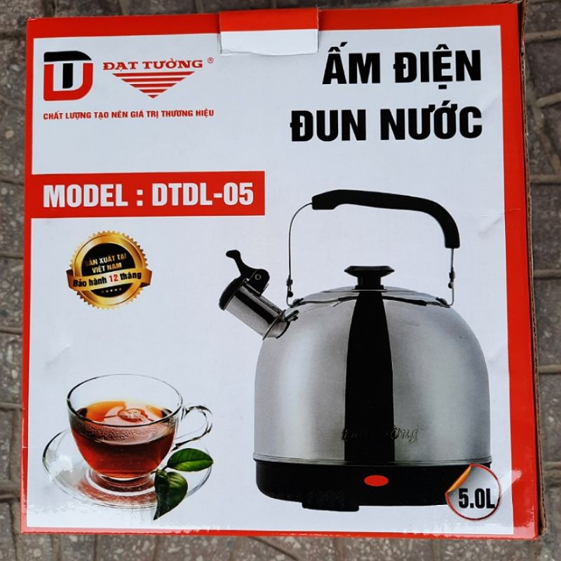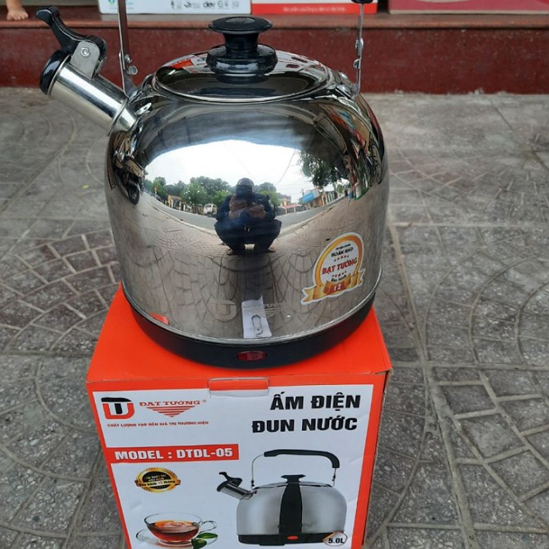 Ấm siêu tốc inox 5 lít đế liền ĐẠT TƯỜNG có còi hú khi sôi bảo hành 12 tháng