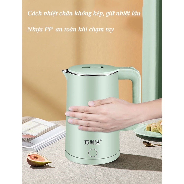 - Ấm đun siêu tốc được thiết kế âm nhiệt rời, có khe cài dây điện dưới đáy, dễ sử dụng và vệ sinh, chống cháy. Bình có lớp inox không truyền nhiệt, chống bỏng nóng trong quá trình sử dụng hay di chuyển, bảo đảm an toàn cho người sử dụng.