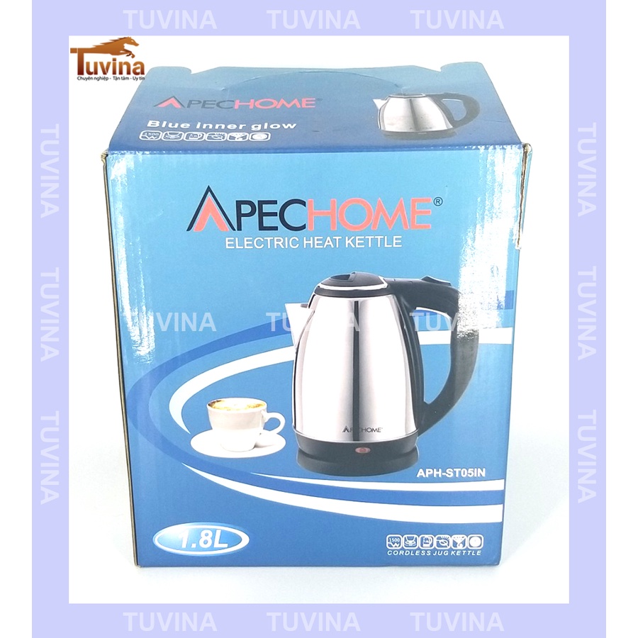 Ấm Siêu Tốc Inox Apechome APH-ST05IN 1.8 Lít Đun Sôi Cực Nhanh - Hàng Chính Hãng (Bảo Hành 12 Tháng)