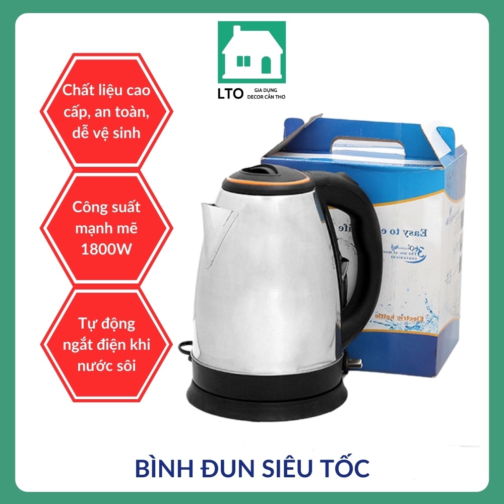 Ấm Siêu Tốc Inox Bình Đun Nước Cao Cấp 1.8L