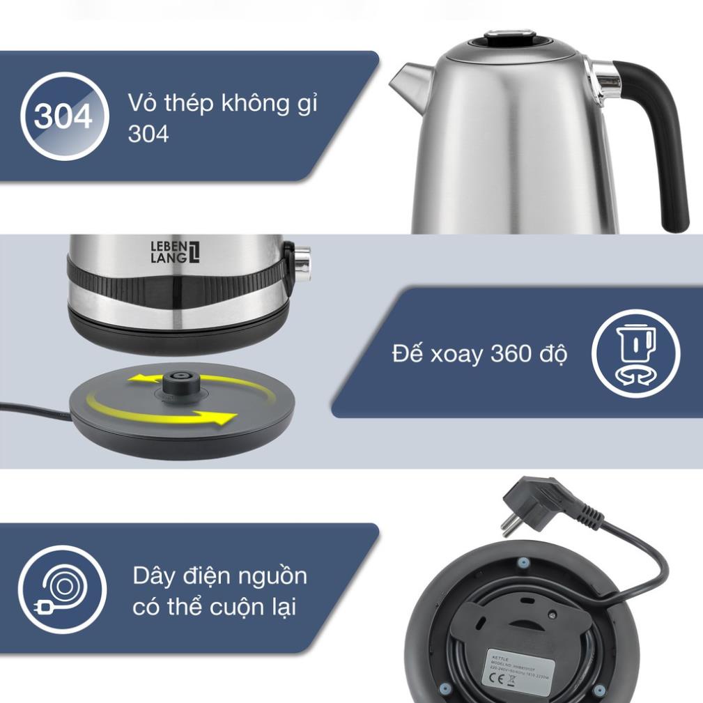 Ấm siêu tốc inox bình siêu tốc inox LEBENLANG LBE2662 1.7L điều khiển nhiệt độ, bảo hành 24 tháng chính hãng
