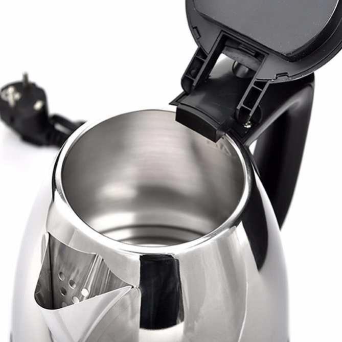 Thân ấm xoay bằng thép không gỉ sáng bóng, tự động ngắt khi nước sôi. Rơ le bảo vệ khi cạn nước