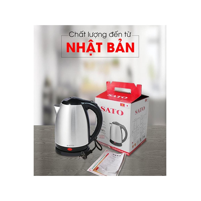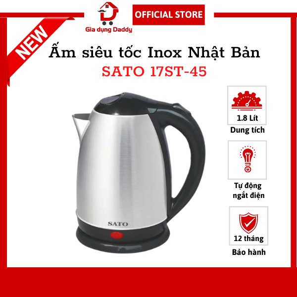 Ấm siêu tốc inox SATO 17ST-45, Dung tích 1.8L, Bình đun nước sôi Nhật Bản mất 3 phút An toàn sức khoẻ Bảo hành 12 tháng
