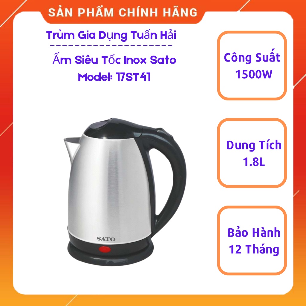 *Ấm Siêu Tốc Inox SATO 17ST41,Công Nghệ Nhật Bản, Tự Động Ngắt Điện Khi Nước Sôi------------------------------------------