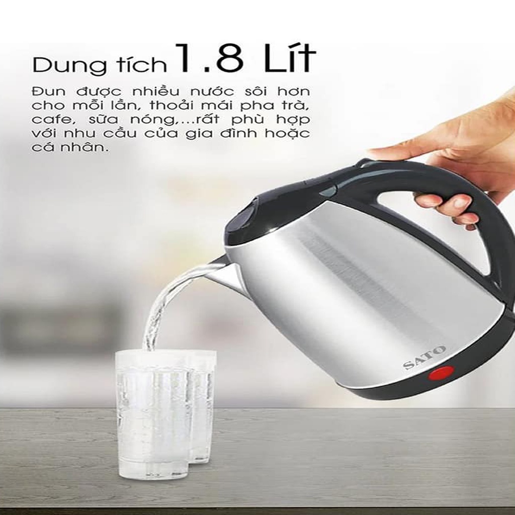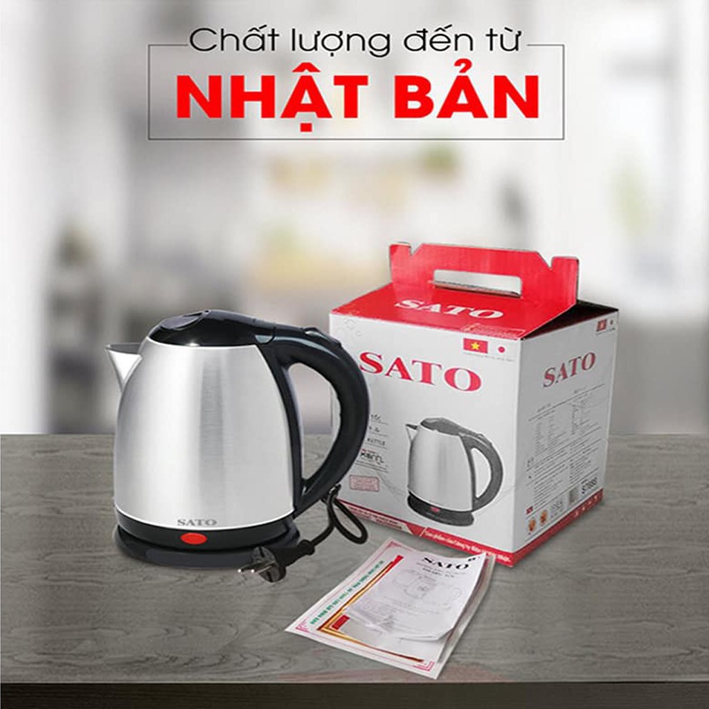 Ấm Siêu Tốc Inox SATO 17ST41,Công Nghệ Nhật Bản, Tự Động Ngắt Điện Khi Nước Sôi