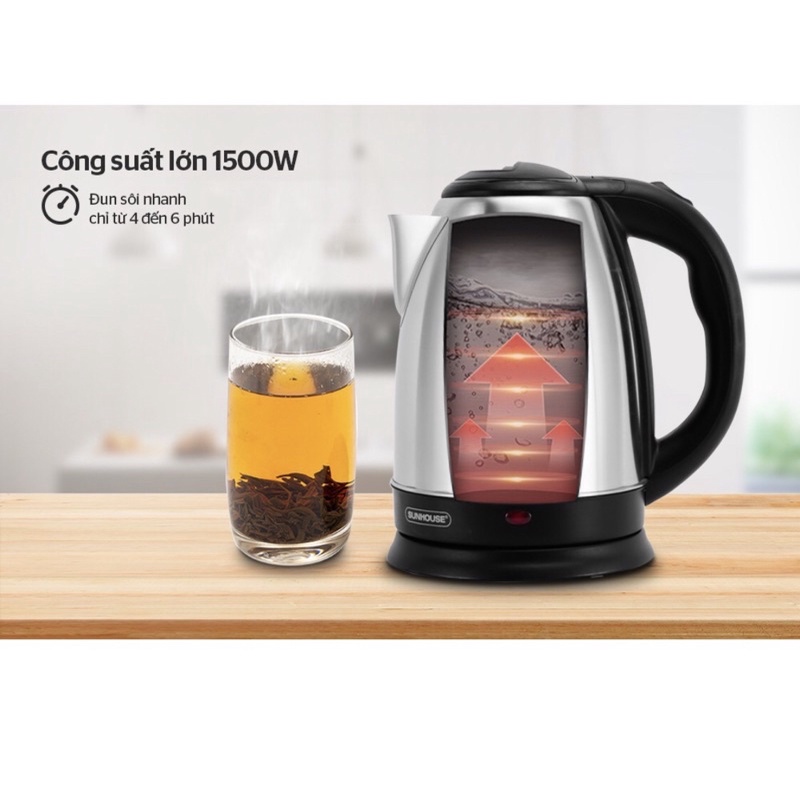 Thiết Bị Điện Gia Dụng > Đồ gia dụng nhà bếp > Ấm đun siêu tốc || Ấm siêu tốc inox SUNHOUSE 1,8lít siêu rẻCòn hàng