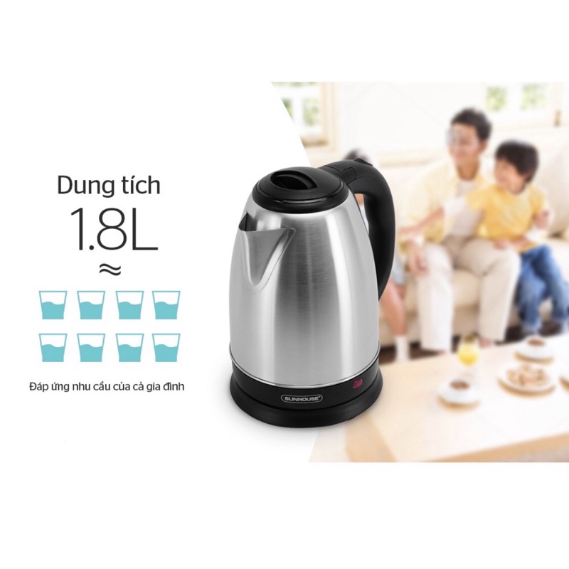 Ấm siêu tốc inox SUNHOUSE 1,8lít siêu rẻ