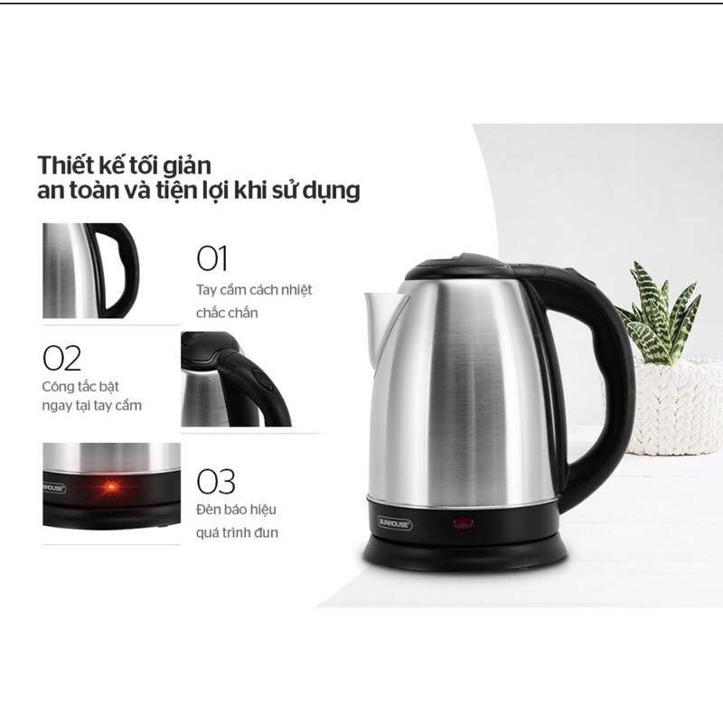 Giới thiệu Ấm siêu tốc inox SUNHOUSE 1,8lít siêu rẻ
