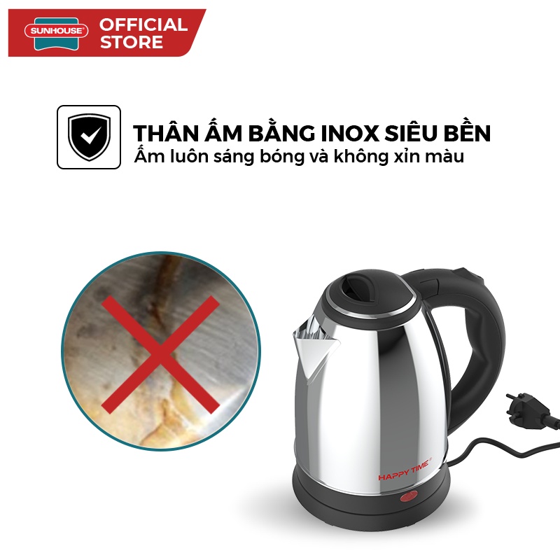 Ấm Siêu Tốc Inox SUNHOUSE HAPPY TIME HTD1055 (1.5L) - Hàng Chính Hãng