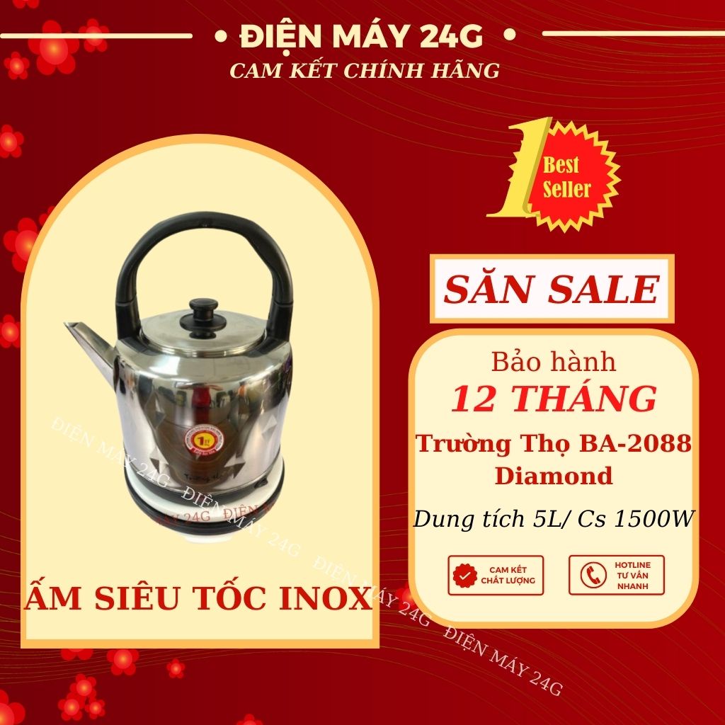 Thiết Bị Điện Gia Dụng > Đồ gia dụng nhà bếp > Ấm đun siêu tốc || Ấm siêu tốc Inox Trường Thọ BA-2088 Diamond – Dung tích 5L- chế độ tự ngắt an toàn và tiện dụngCòn hàng