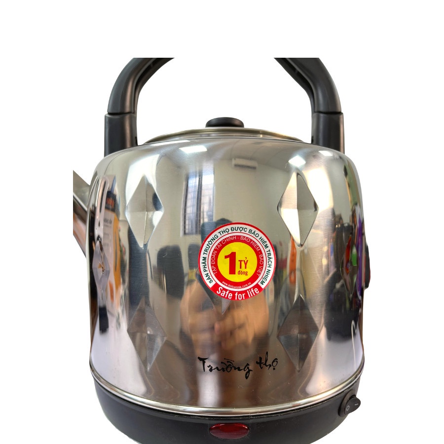 Sản phẩm có dung tích ấm đun nước Trường Thọ lớn lên đến 5 lít, hàng chính hãng an toàn cho người sử dụng. Là sản phẩm gia dụng được ưa chuộng nhất hiện nay, phù hợp với nhu cầu của mọi gia đình trong công việc nội trợ một cách dẽ dàng