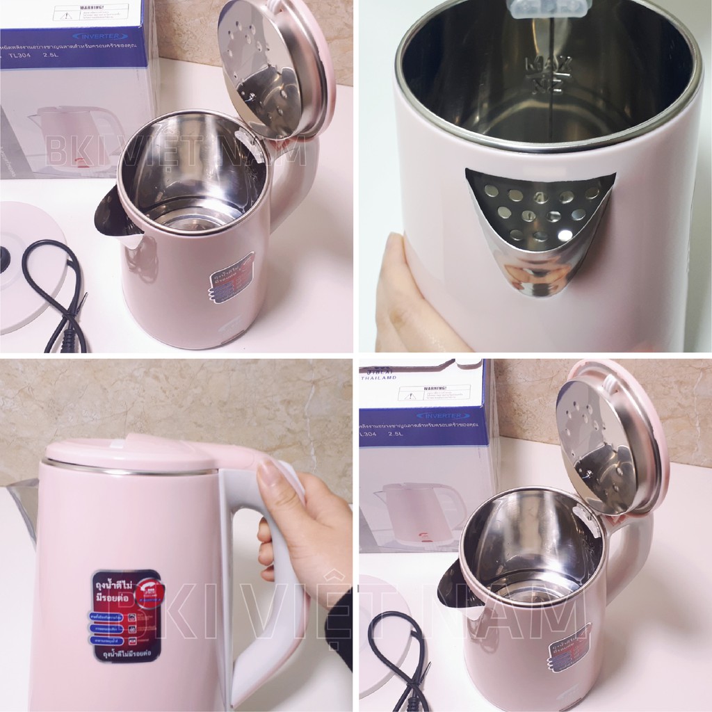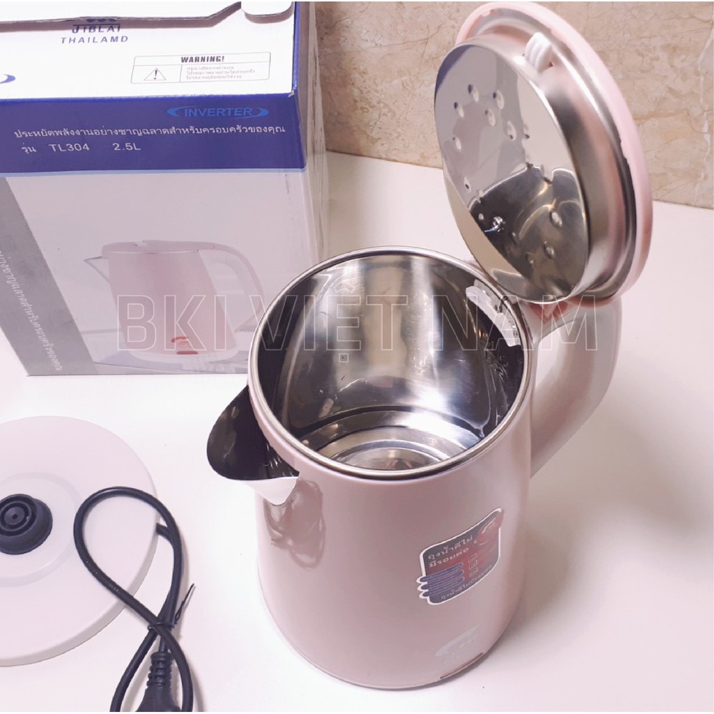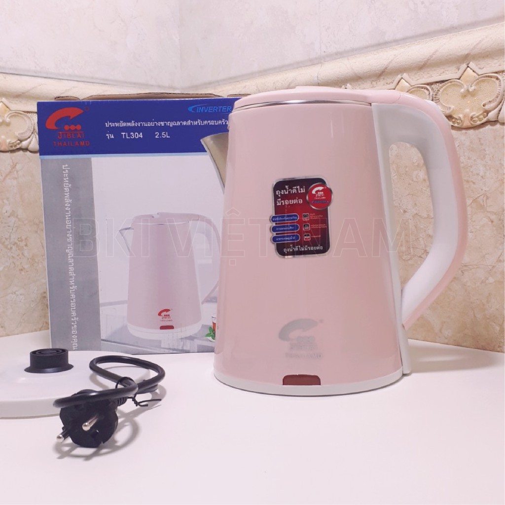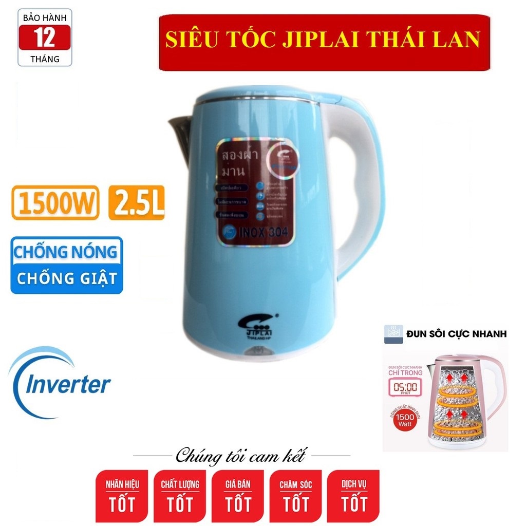 Ấm Siêu Tốc JipLai Thái Lan 2 Lớp Chống Nóng Chống Giật 2.5L Đun Sôi Siêu Nhanh CÔNG NGHỆ INVERTER