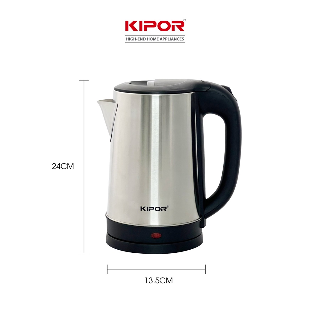 [Mã BMBAU50 giảm 10% đơn 99k] Ấm siêu tốc KIPOR KP-A318SA - 1.8L - Vỏ inox304, đế xoay 360 độ, Bảo hành tại nhà 12 tháng
