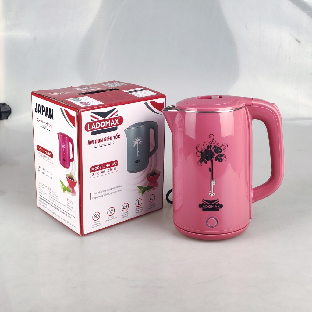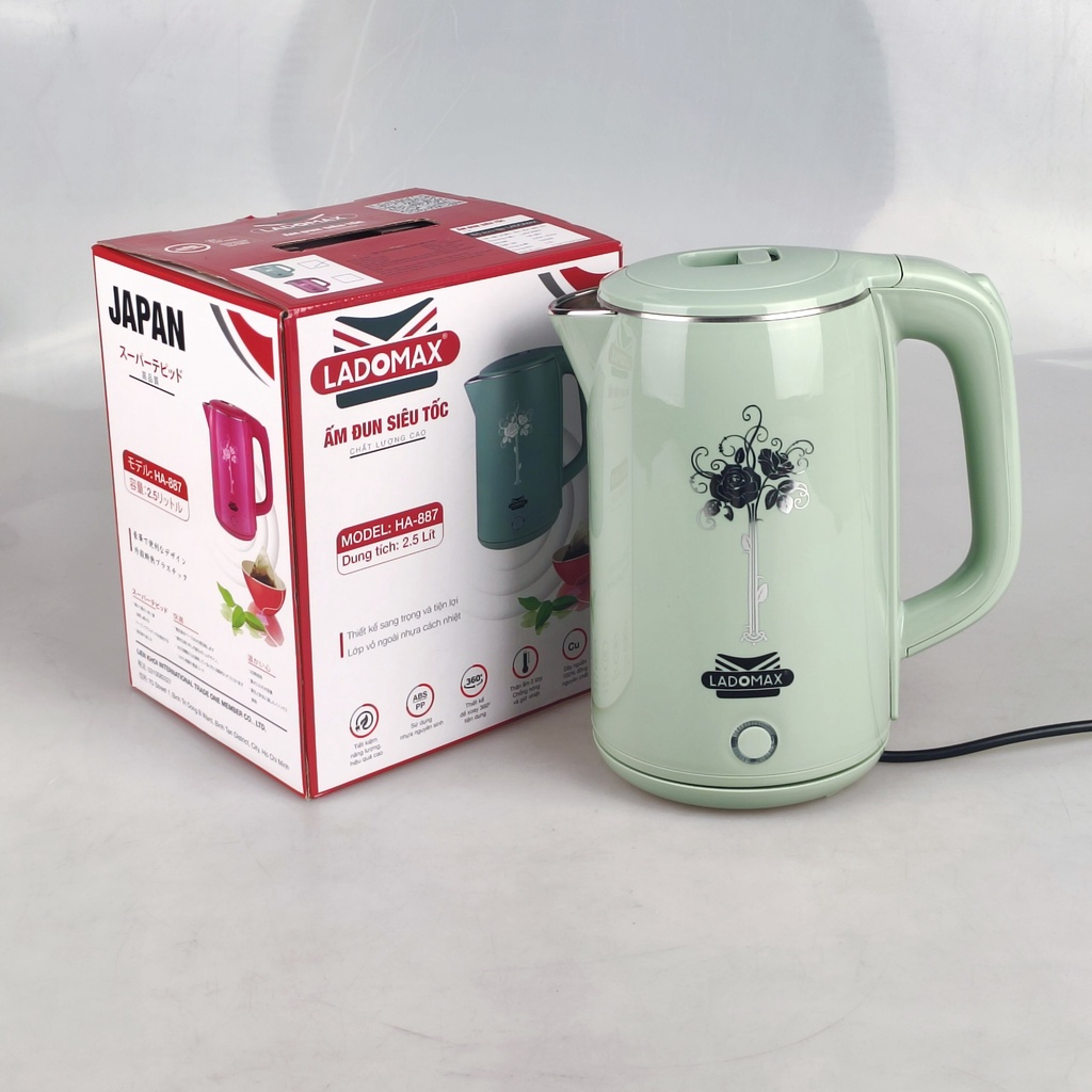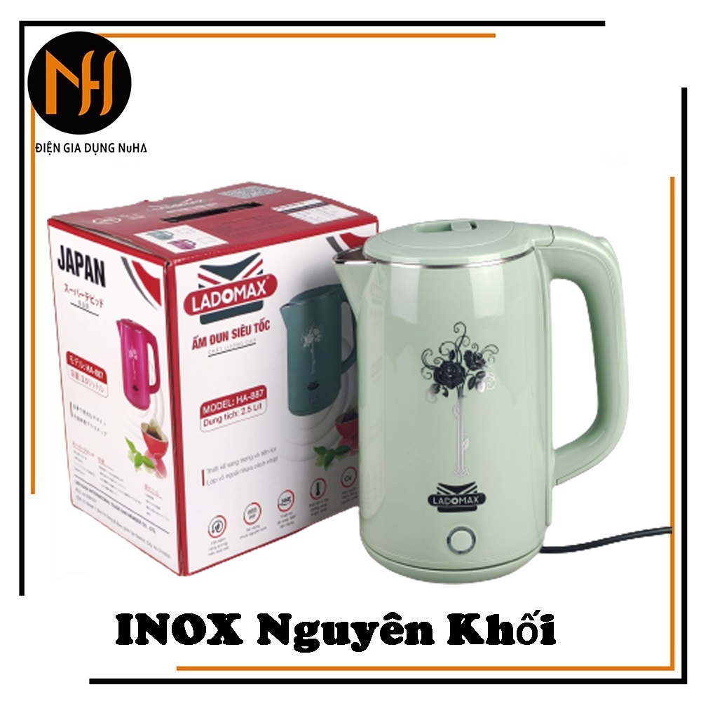 Ấm siêu tốc Ladomax HA887 lòng inox nguyên khối, dung tích 2.5L, bảo hành 12 tháng