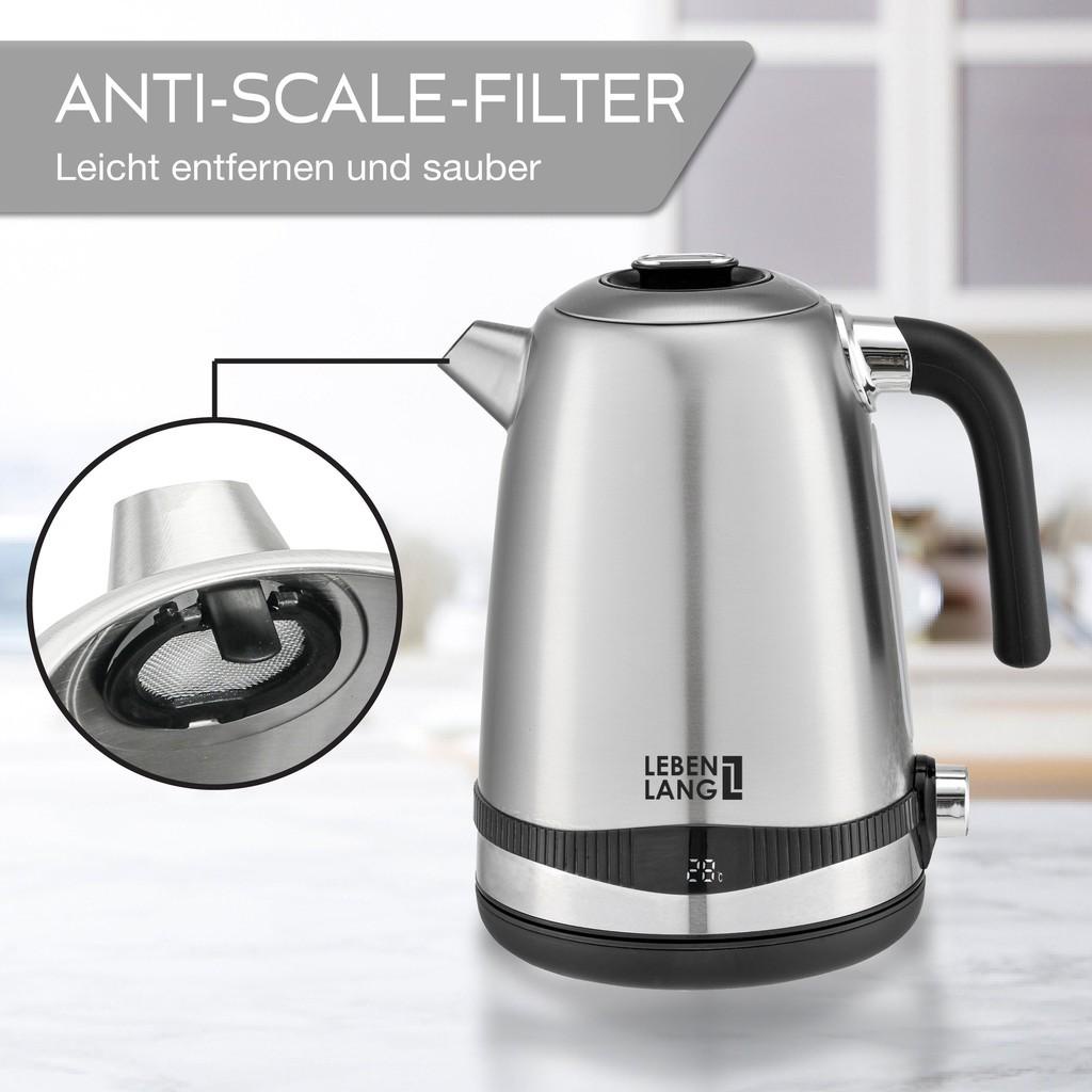 Mô Tả Sản PhẩmẤm siêu tốc 1.7 lít bình siêu tốc thủy tinh LEBENLANG từ Đức gồm lõi lọc trà bằng inox, bảo hành 2 năm