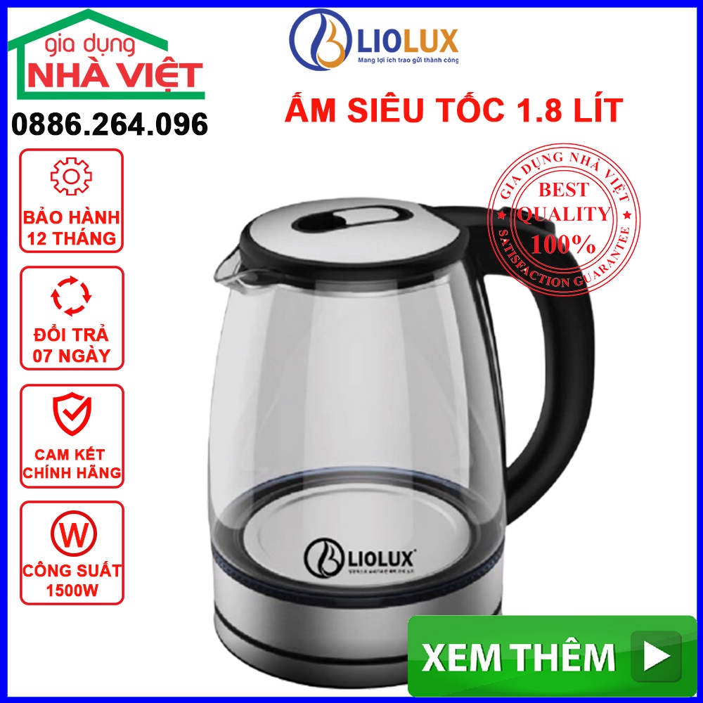 Ấm siêu tốc LIOLUX ,Ấm đun siêu tốc thủy tinh cao cấp, công suất 1500W bảo hành 18 tháng đổi mới trong 07 ngày LIO 109
