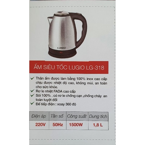 Ấm siêu tốc lugio lg-318