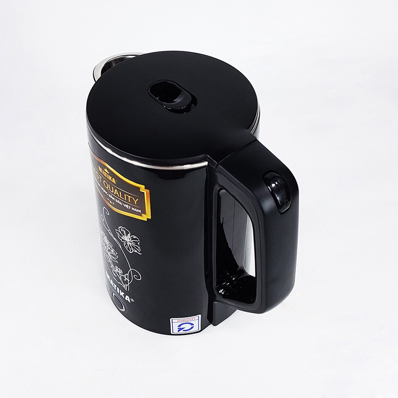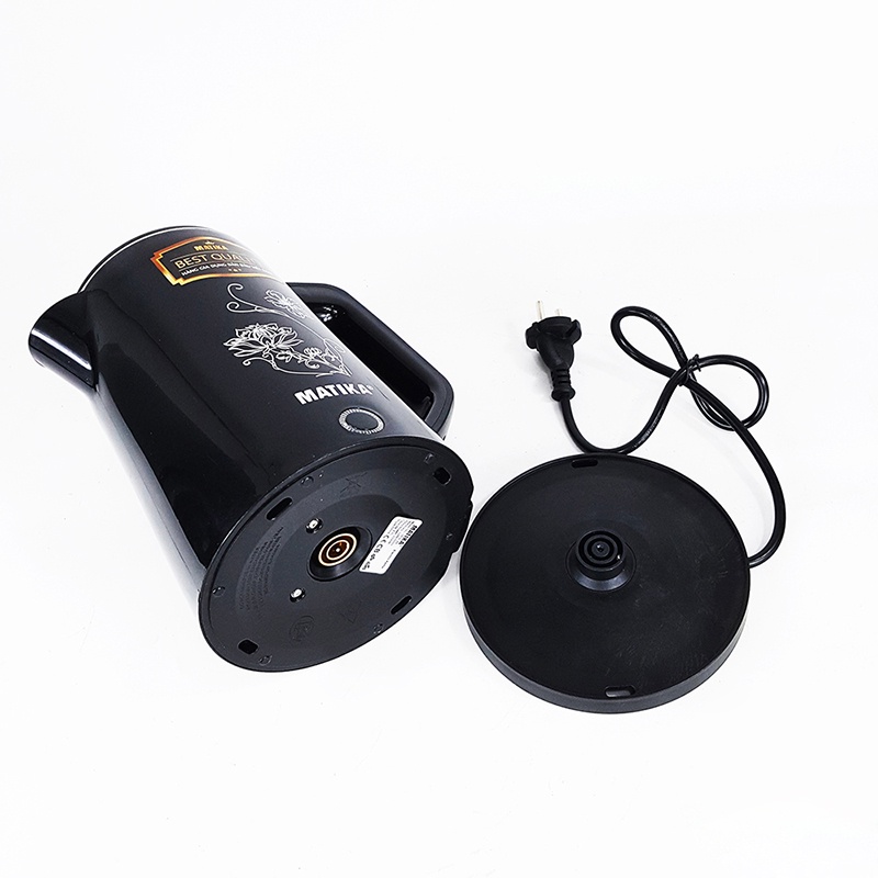 - Ấm điện Matika MTK-29 thu hút ánh nhìn bởi hoa văn được điểm xuyết tinh tế trên nền đen hiện đại, kiểu dáng gọn nhẹ phù hợp với mọi không gian bếp.