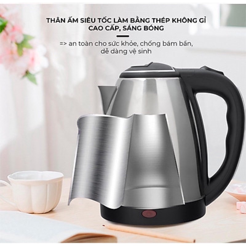 Ấm siêu tốc có thể xoay 360 độ nhờ thiết kế đế tiếp điện tháo rời, do đó bạn có thể nhấc và đặt bình dễ dàng ở mọi góc, mang đến sự thuận tiện khi sử dụng. Nắp bình có độ mở rộng giúp bạn dễ dàng đổ nước vào bình cũng như vệ sinh sau khi sử dụng. Cả nắp bình và tay cầm đều làm bằng nhựa cách nhiệt, tránh gây bỏng cho bạn khi di chuyển hoặc mở nắp bình.