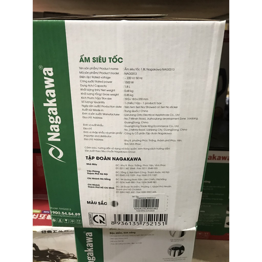 Thiết Bị Điện Gia Dụng > Đồ gia dụng nhà bếp > Ấm đun siêu tốc || Ấm siêu tốc Nagakawa NAG0312Còn hàng