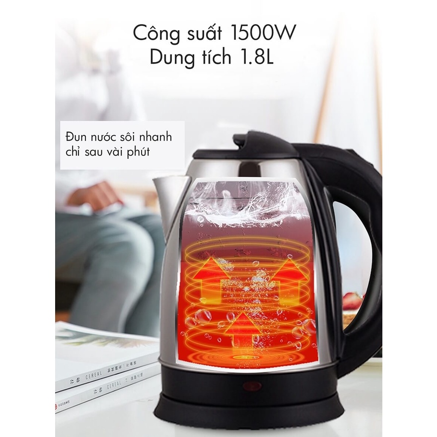 Bình đun nước siêu tốc có dung tích là 1.8 lít. Trên thân ấm có trang bị đèn hiển thị, khi ấm đun nước đèn sẽ báo màu đỏ. Khi nước đã đun sôi đèn đỏ này sẽ tắt để người dùng dễ nhận biết tình trạng hoạt động của ấm.