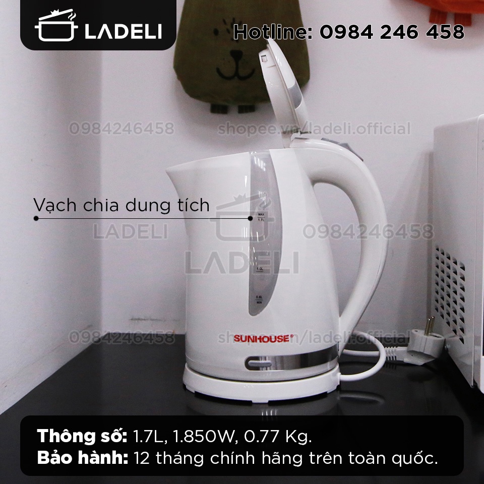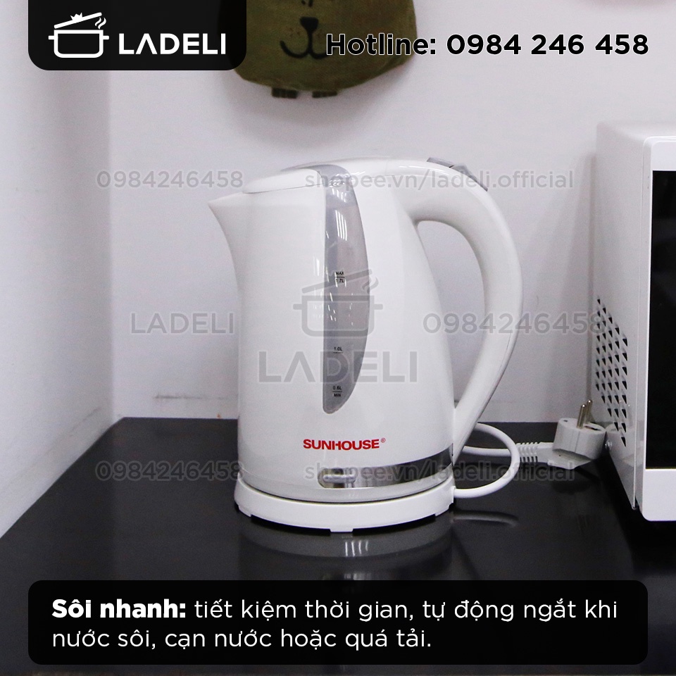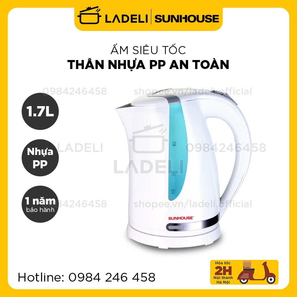 Giới thiệu [Mã ELHADEV giảm 4% đơn 300K] Ấm siêu tốc nhựa PP 1.7L SUNHOUSE SHD1300 chống bỏng