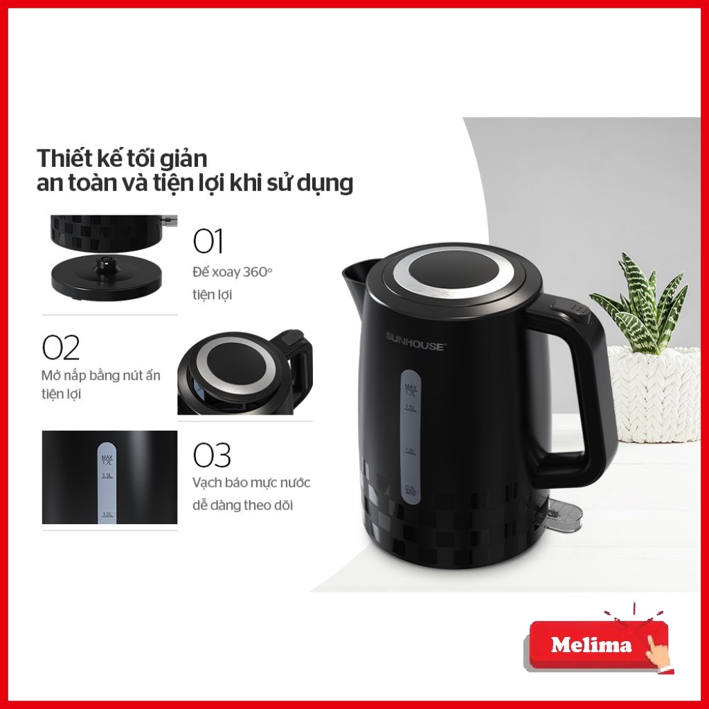 Ấm siêu tốc nhựa Sunhouse SHD1306, 1.7 Lít, chất liệu nhựa PP Nguyên Sinh An toàn tuyệt đối, Công suất 1800W, Melima✅ Cam kết từ Melima