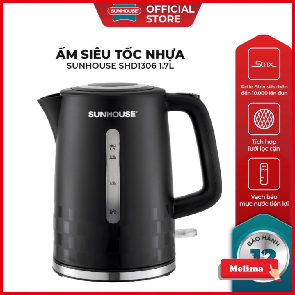 Thiết Bị Điện Gia Dụng > Đồ gia dụng nhà bếp > Ấm đun siêu tốc || Ấm siêu tốc nhựa PP Nguyên Sinh Sunhouse SHD1306, 1.7 Lít, chất liệu An toàn tuyệt đối, Công suất 1800W, MelimaCòn hàng