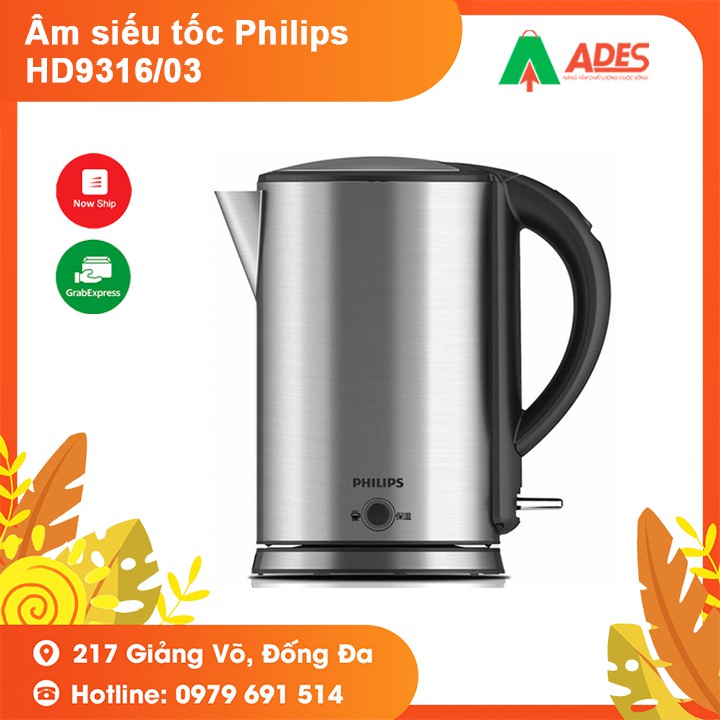 Thiết Bị Điện Gia Dụng > Đồ gia dụng nhà bếp > Ấm đun siêu tốc || Âm siếu tốc Philips HD9316/03 cao cấp tiên lợi - Bảo hành 24 thángCòn hàng