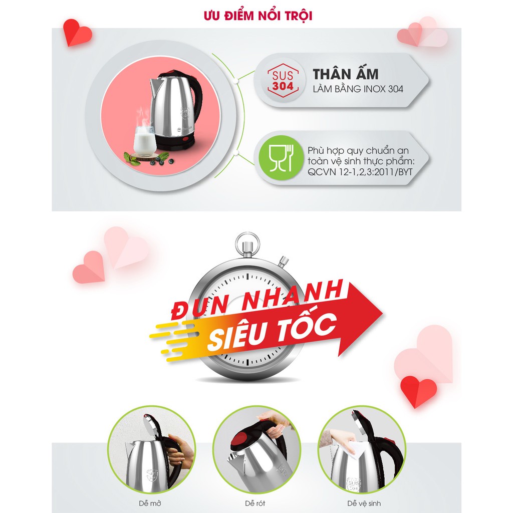 Ấm siêu tốc Rạng Đông 1,8l RD-AST18ST2 công suất 1500w, inox 304 cao cấp*** Mô tả sản phẩm: