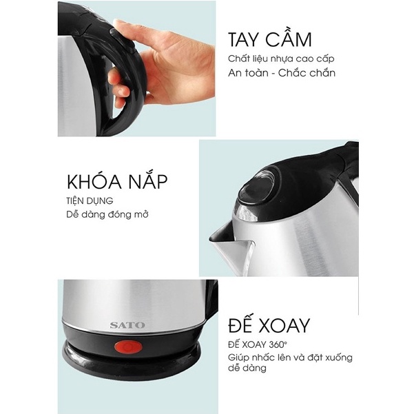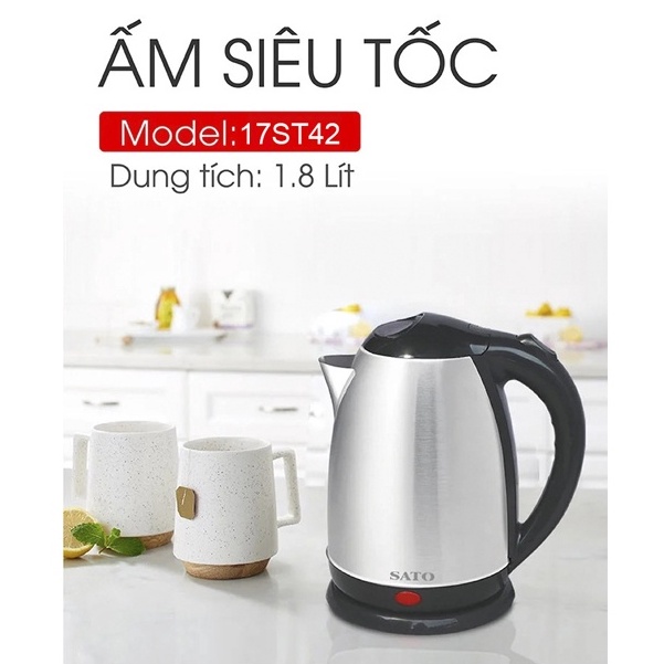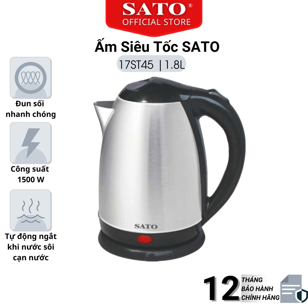 Giới thiệu [Mã ELHADEV giảm 4% đơn 300K] Ấm siêu tốc SATO 17ST45 Dung tích 1.8L - Bảo hành 12 tháng
