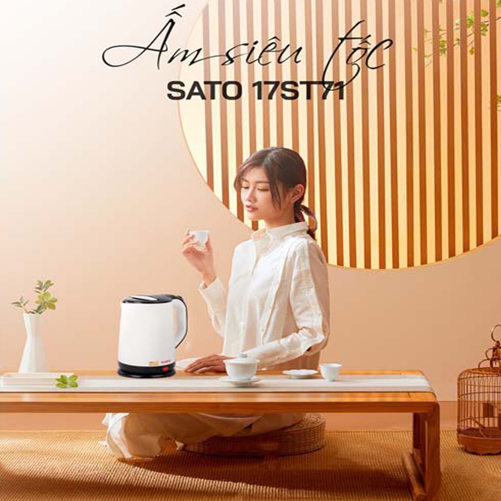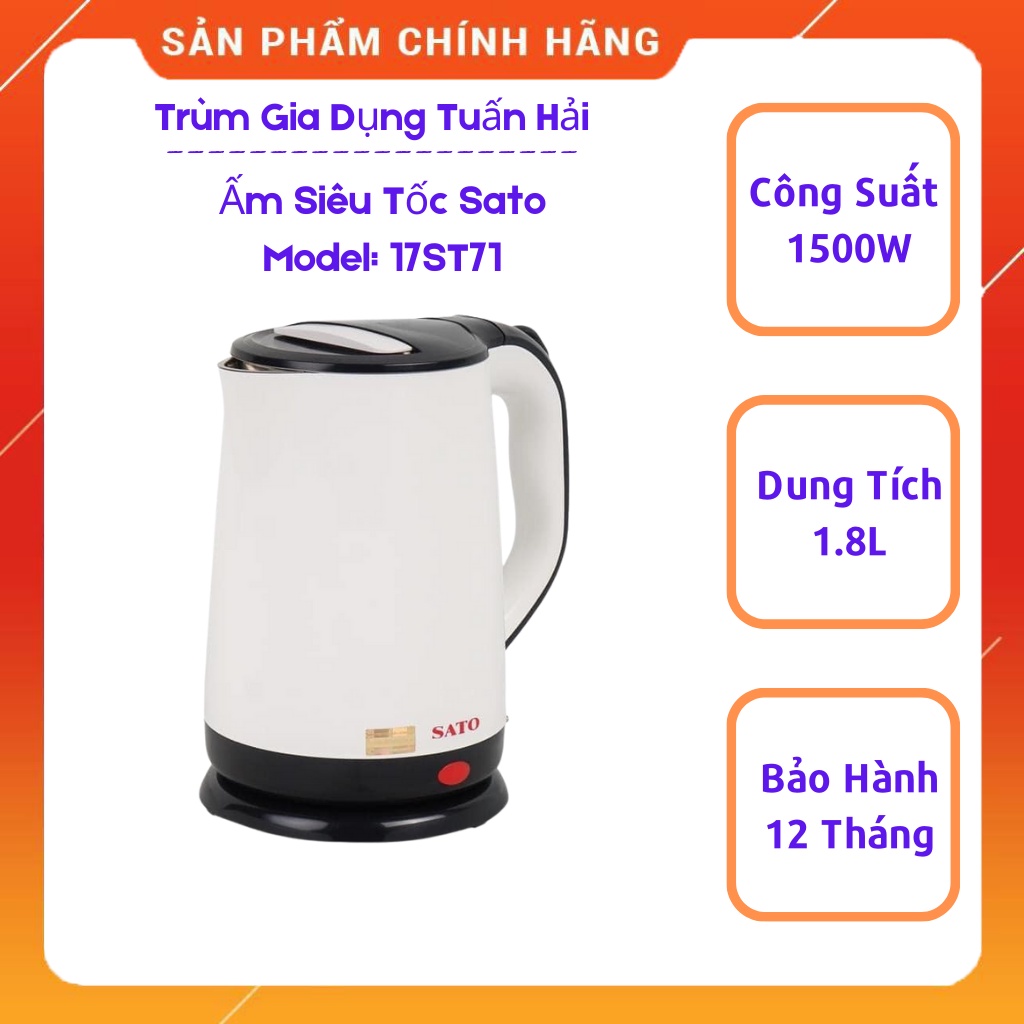 Giới thiệu Ấm Siêu Tốc SATO 17ST71, Dung Tích 1.8L, Vỏ Nhựa Cao Cấp Cách Nhiệt.