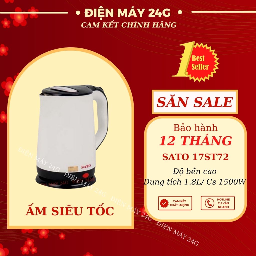 Thiết Bị Điện Gia Dụng > Đồ gia dụng nhà bếp > Ấm đun siêu tốc || Ấm siêu tốc SATO 17ST72 vỏ nhựa cao cấp cách nhiệt – Dung tích 1.8LCòn hàng