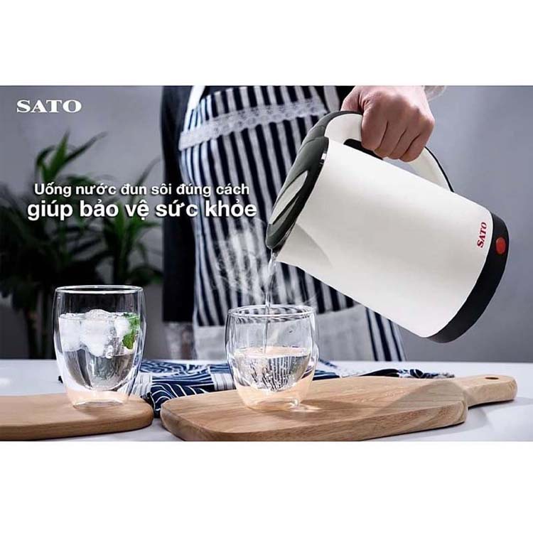 Giới thiệu Ấm siêu tốc SATO 17ST72 ấm đun siêu tốc 1.8L màu trắng lớp trong inox cao cấp lớp ngoài nhựa chịu nhiệt chống trầy xước