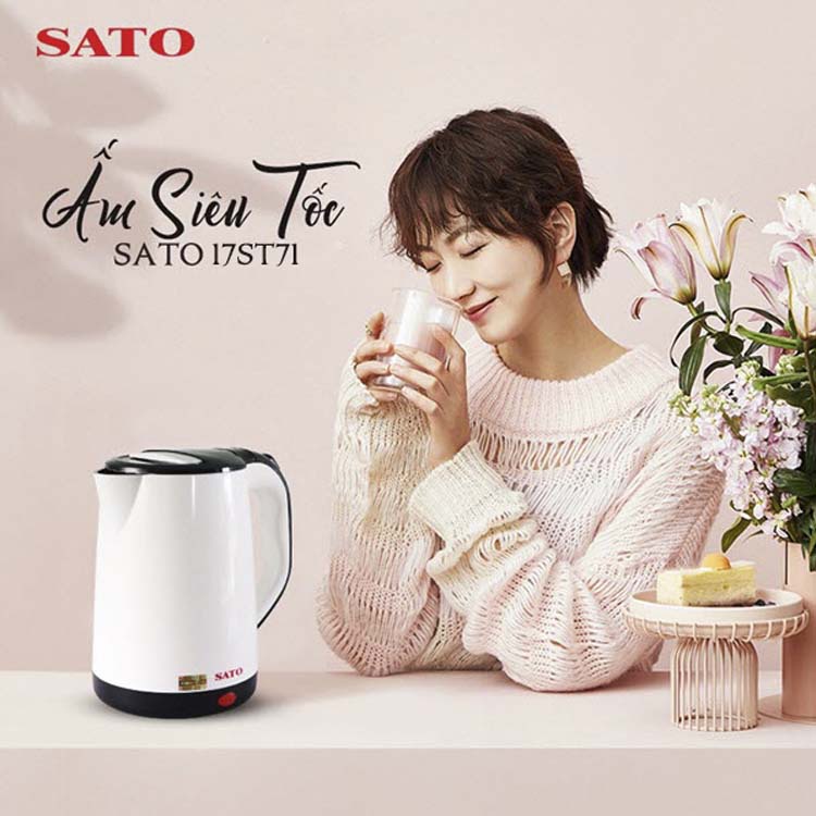 Ấm siêu tốc SATO 17ST7 có dung tích 1,8L, giúp cho người dùng luôn có nước nóng để pha cho mình tách cà phê, trà hay pha mì… một cách nhanh chóng mà không phải chờ đợi lâu.