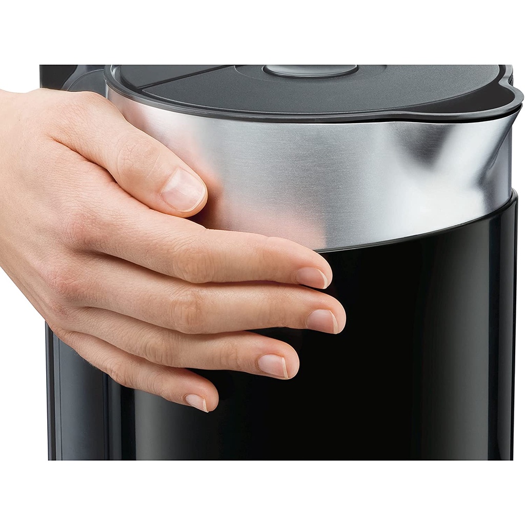 Ấm Đun Nước Siemens TW86103P – Màu Đen, với công suất 2400W, Dung tích 1,5 lít, có 4 mức nhiệt 70-80-90-100 giúp đáp ứng mọi nhu cầu của gia đình : pha trà, pha sữa, ngũ cốc, chế biến thực phẩm, nấu ăn… và giúp tiệt kiện điện tối đa điện năng và nhu cầu sử dụng.