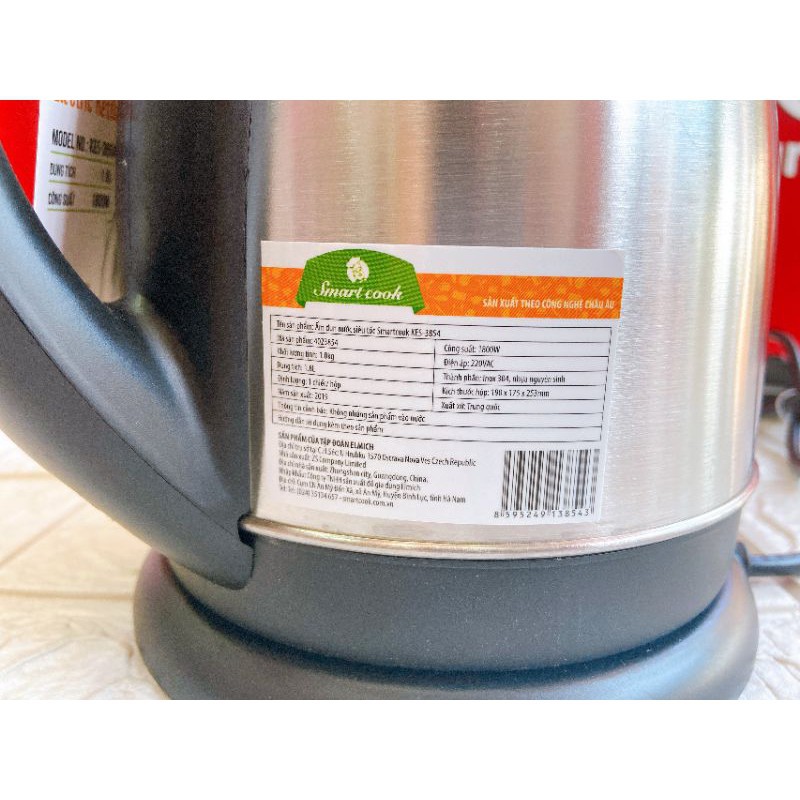 Thiết Bị Điện Gia Dụng > Đồ gia dụng nhà bếp > Ấm đun siêu tốc || Ấm siêu tốc smartcook inox 304 kes3854 dung tích 1.8l / Bình Đun Siêu TốcCòn hàng