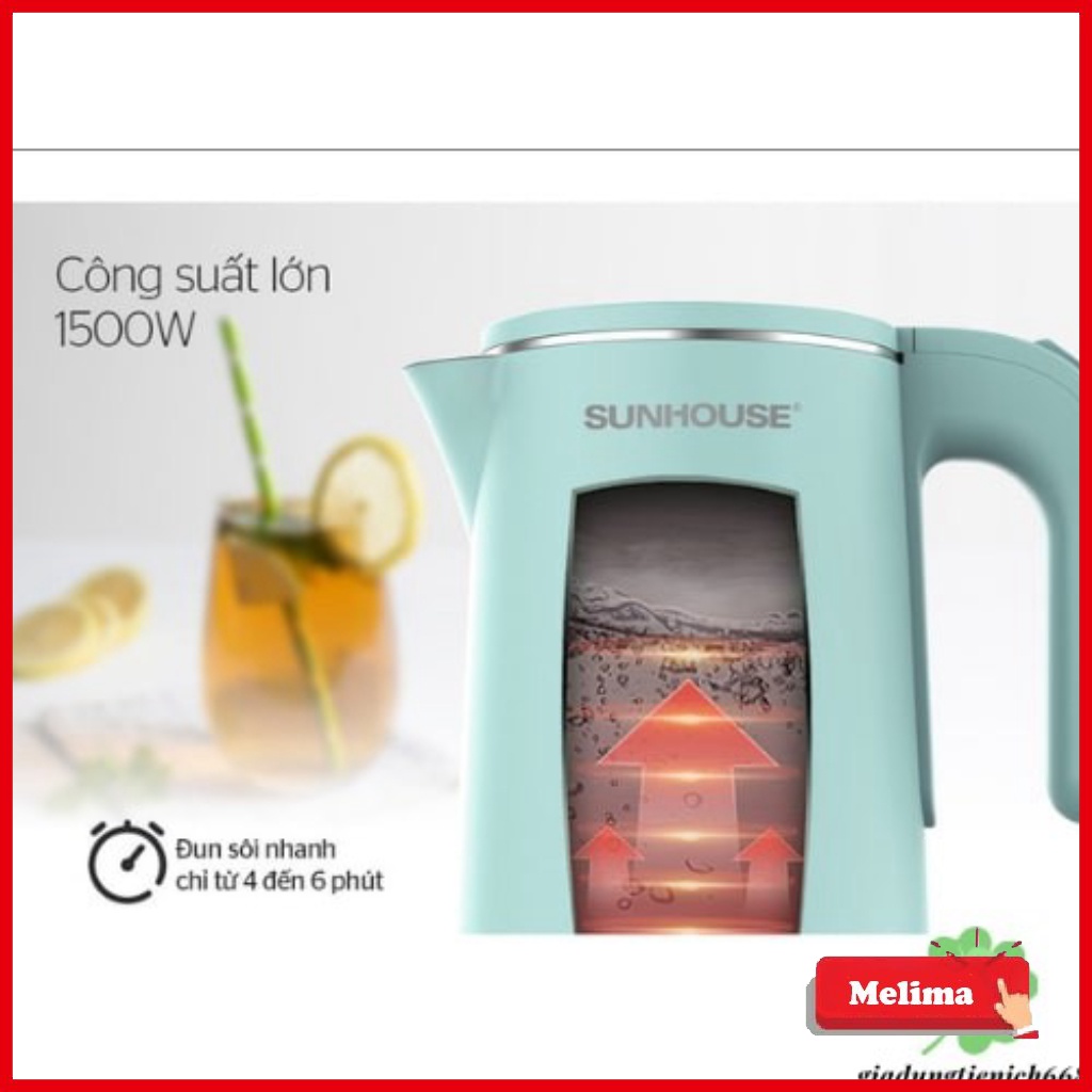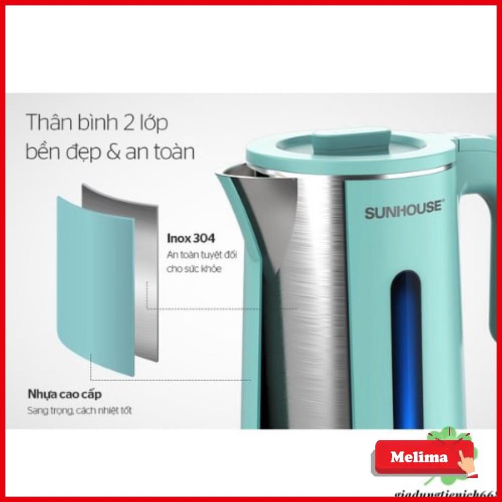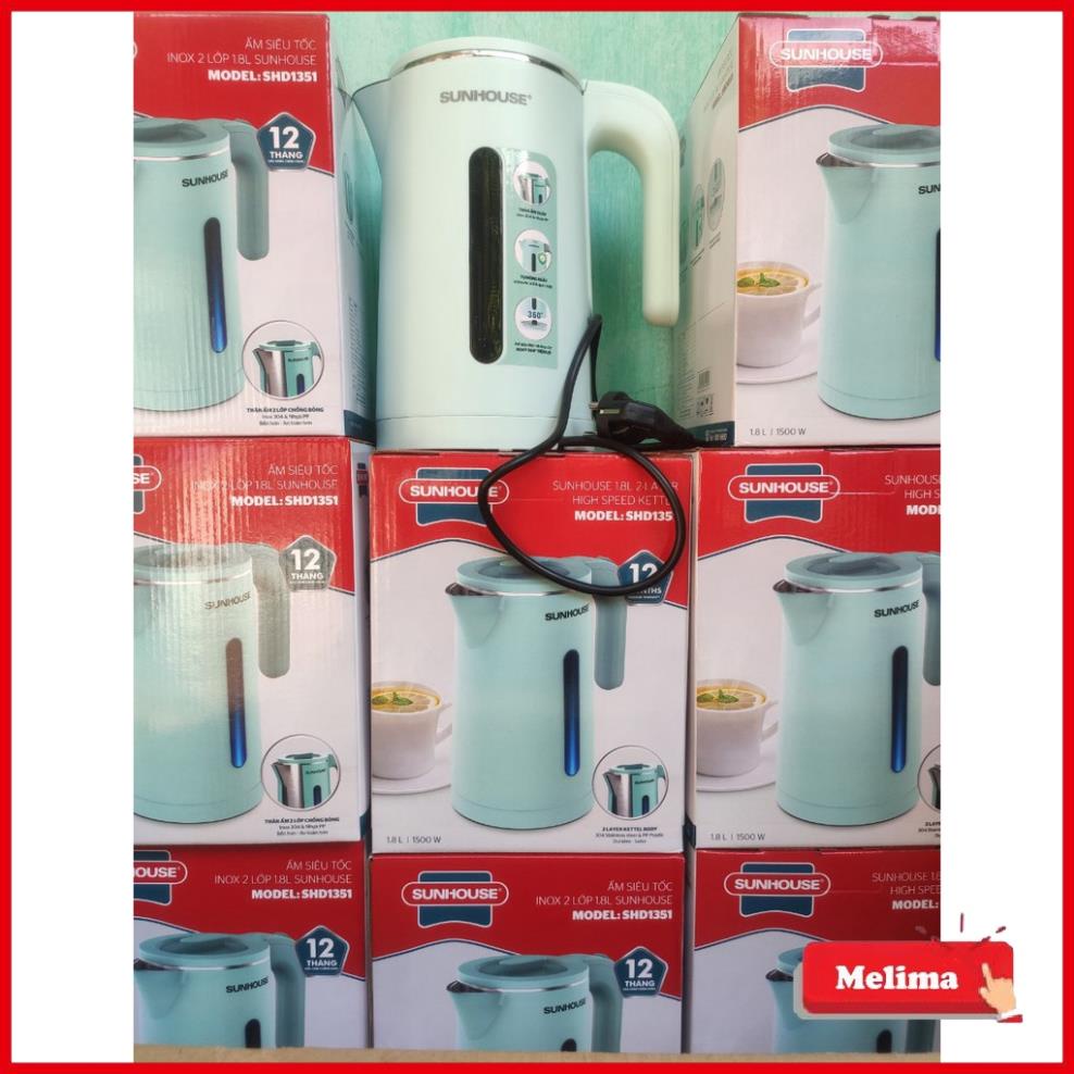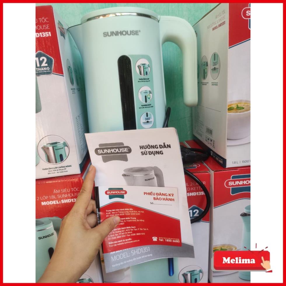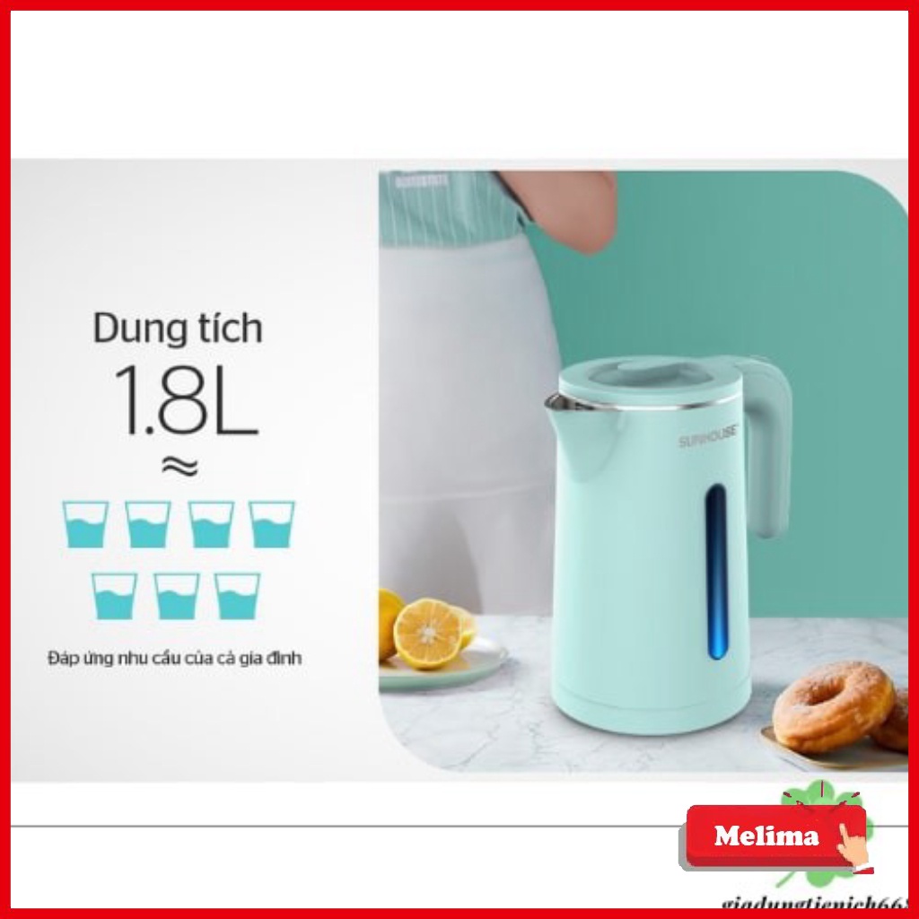 Ấm siêu tốc Sunhouse 02 lớp Inox, dung tích 1.8L mã SHD1351, siêu đẹp, siêu bền, chính hãng, bảo hành 12 tháng, Melima✅ Cam kết từ Melima