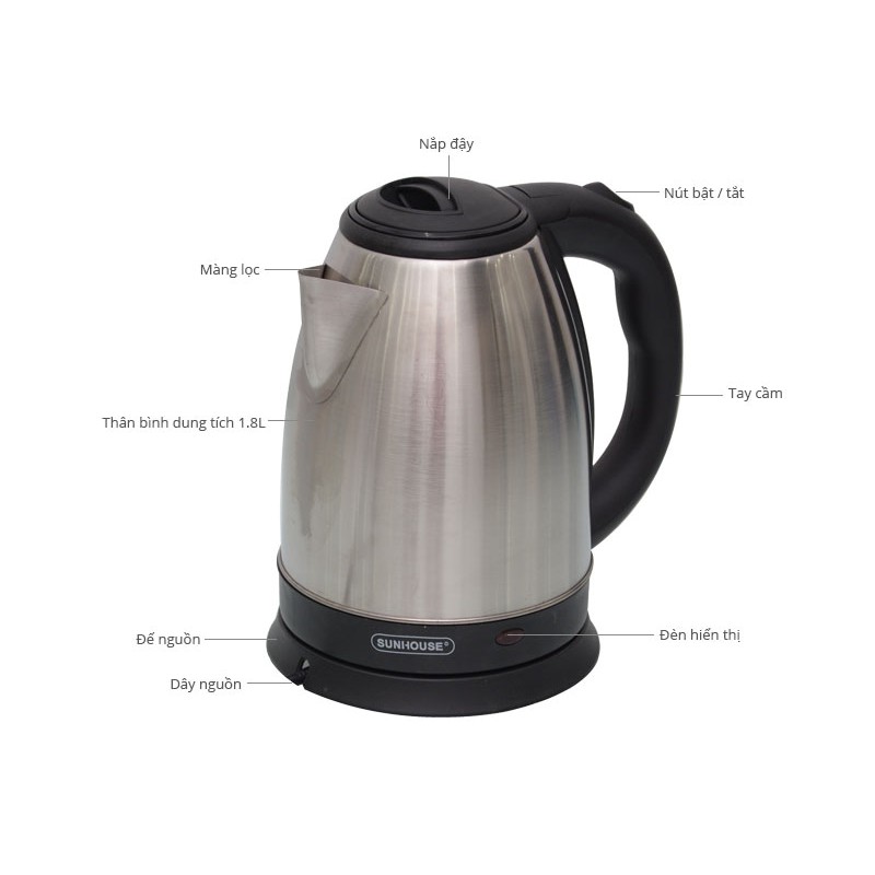 ✔Mã hàng: ấm siêu tốc Sunhouse SHD1182, 1.8L✔Dung tích: 1.8L