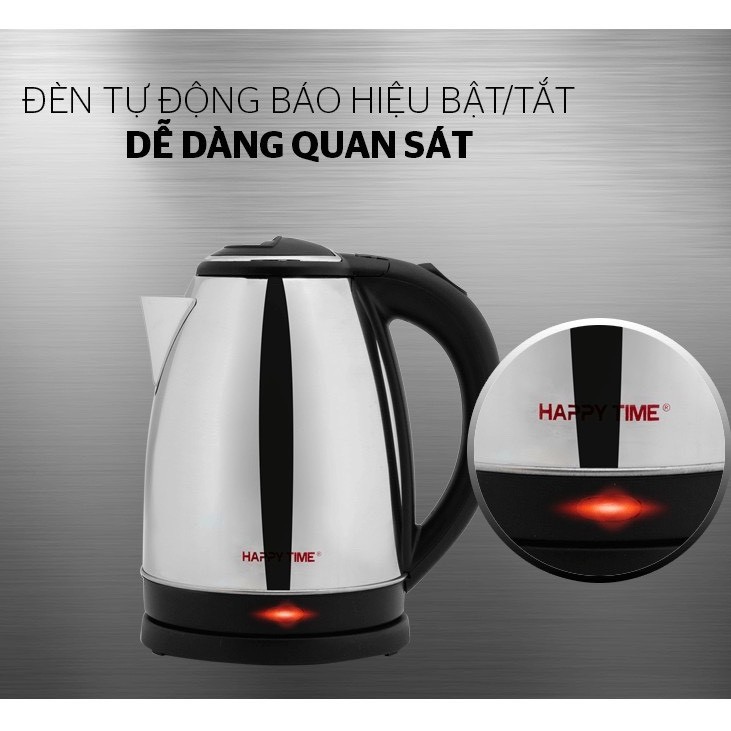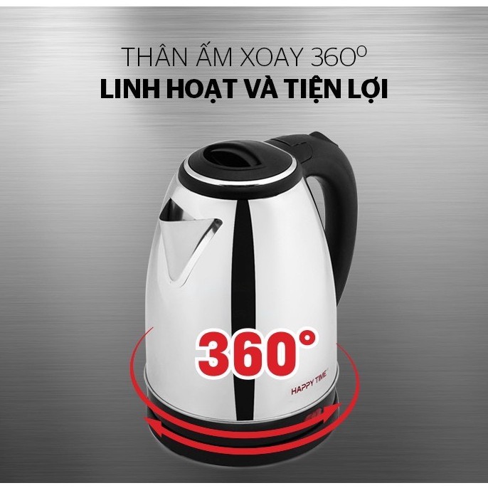 Đặc điểm khác: Thân ấm xoay bằng thép không gỉ sáng bóng, tự động ngắt khi nước sôi. Rơ le bảo vệ khi cạn nước