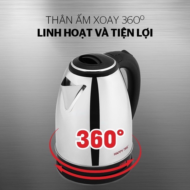 Đặc điểm khác: Thân ấm xoay bằng thép không gỉ sáng bóng, tự động ngắt khi nước sôi. Rơ le bảo vệ khi cạn nước