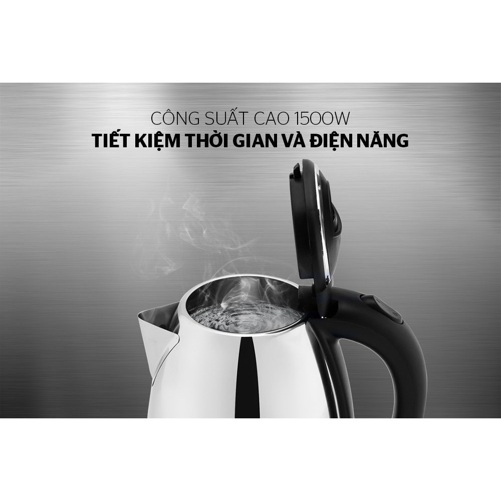 Công suất mạnh 1500W cho thời gian nấu nước nhanh chóng, giúp tiết kiệm thời gian và điện năng tối đa.