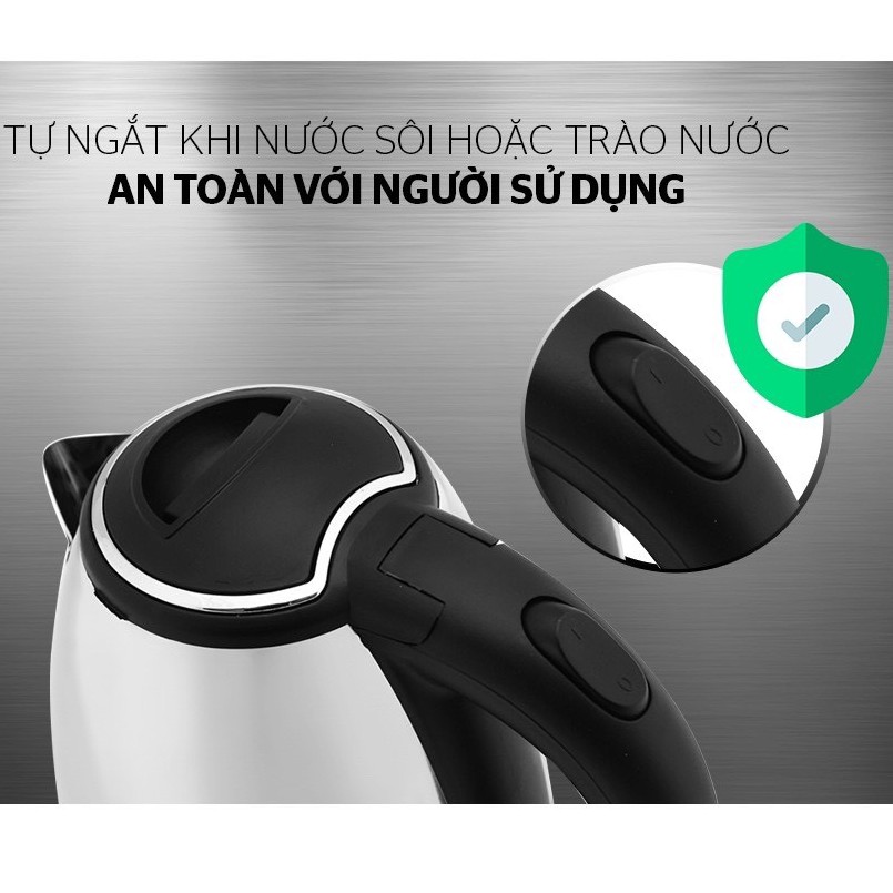 Ấm có chế độ ngắt tự động khi nước sôi hoặc cạn nước, đảm bảo an toàn tối đa cho người sử dụng (quên/bận rộn công việc khác). Chức năng này còn giúp làm tăng tuổi thọ sản phẩm và phòng chống cháy nổ.