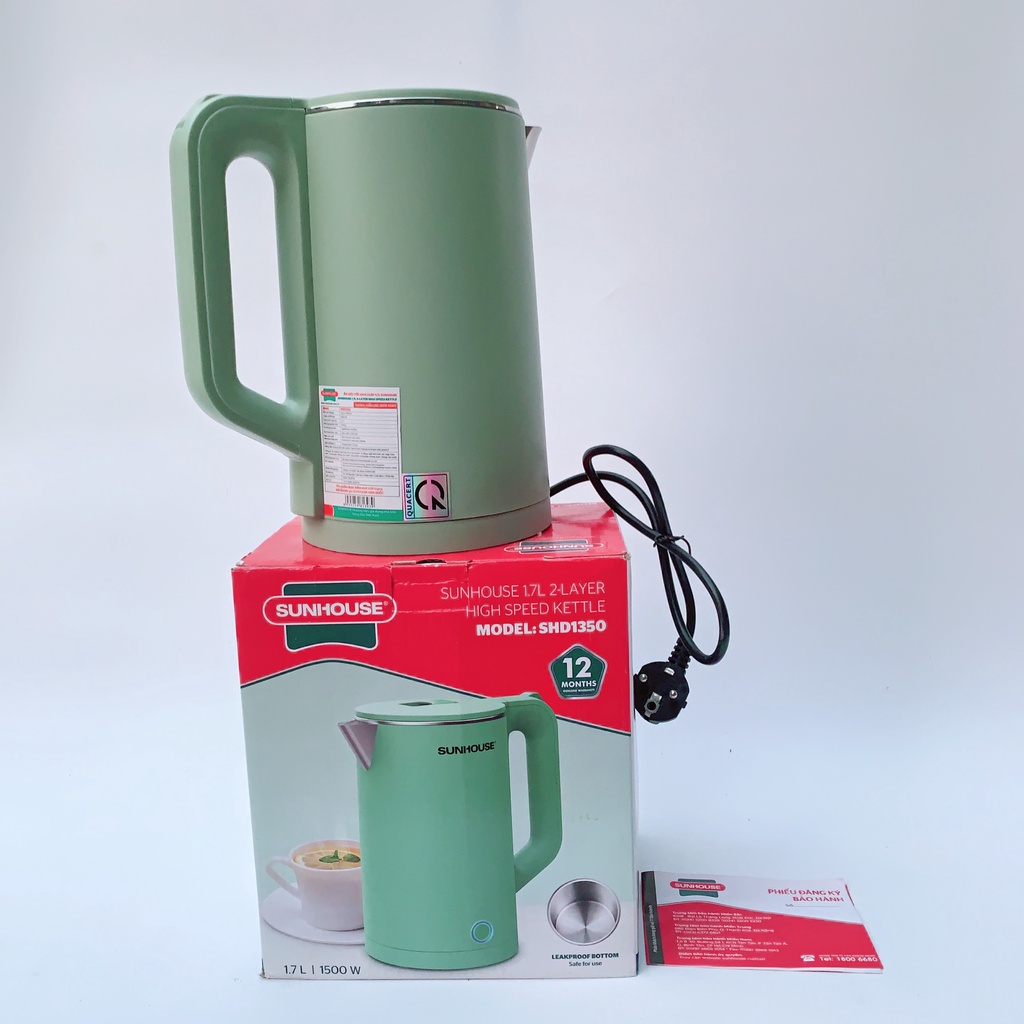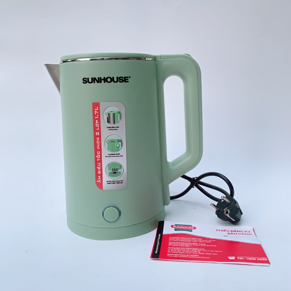 Ấm siêu tốc SUNHOUSE inox 2 lớp 1.7L SHD1350 HÀNG CHÍNH HÃNG