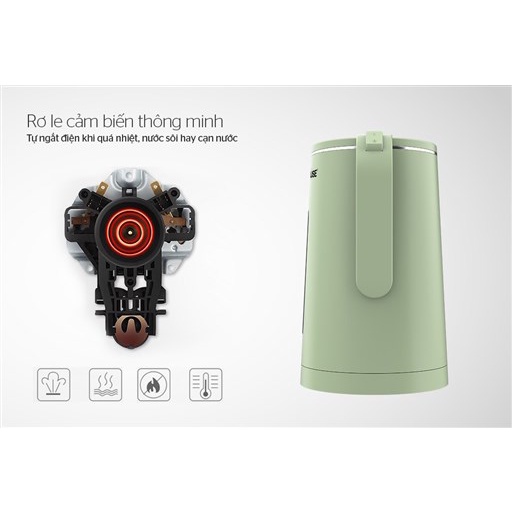 - Tự động ngắt khi nước sôi, ấm cạn hoặc quá nhiệt