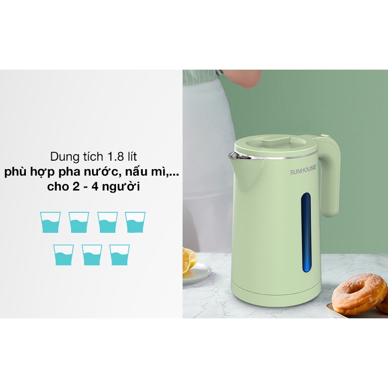 Giới thiệu [Mã ELHADEV giảm 4% đơn 300K] Ấm siêu tốc Sunhouse inox 2 lớp 1,8l, công suất 1500w SHD1353